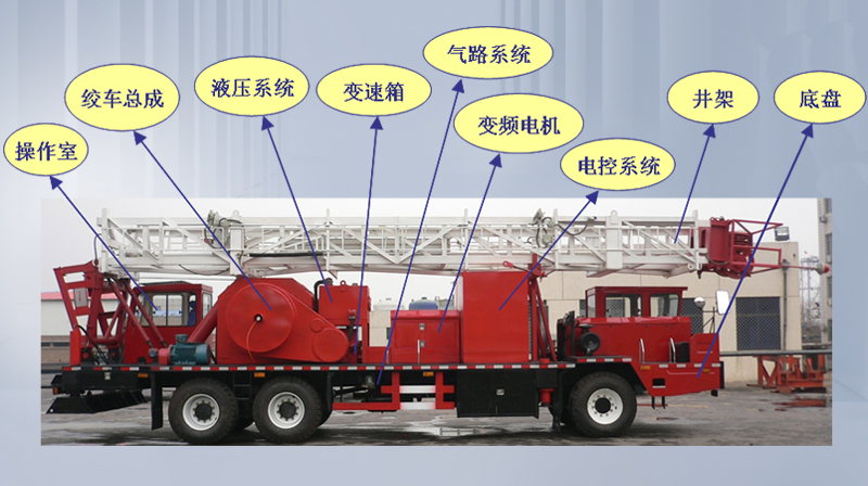 輪式網電修井機主要由修井機主機和箱變總成或增程式發電機組組成,用于油田井深范圍在4000m以內的油、氣、水井等小修作業。產品包括XJ70DBZ型、XJ90DBZ型。